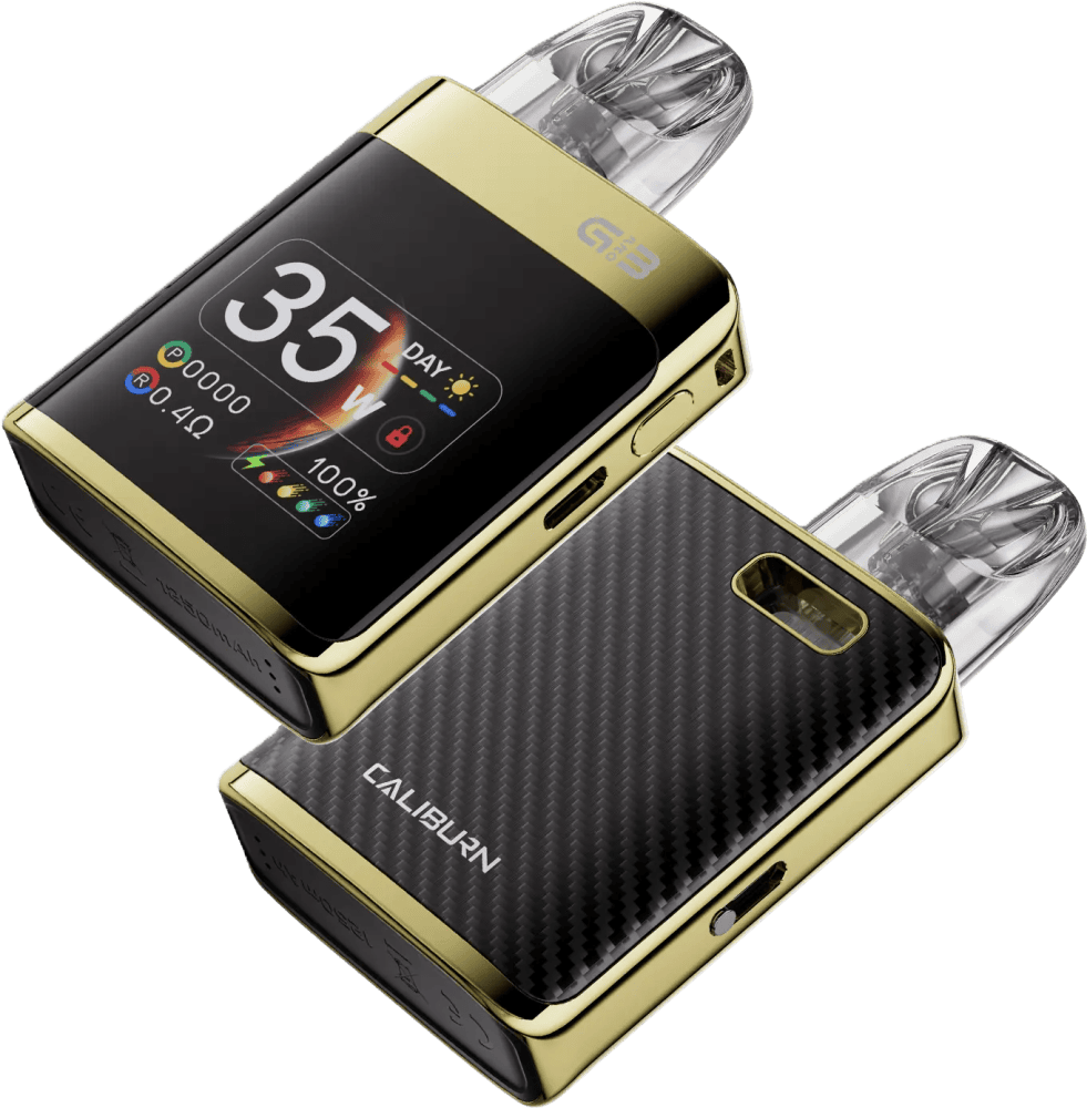 استعد لتجربة تبخير فائقة الذكاء مع جهاز Caliburn G3 Pro KOKO بتصميمه الفاخر باللون الذهبي اللامع وشاشته الكاملة التي تمنحك تحكمًا دقيقًا بكل تفاصيل الاستخدام.
